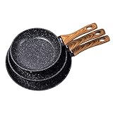 wellhouse Juego de 3 sartenes antiadherentes, sartén de granito, sartenes para tortilla de huevos, sartenes resistentes al calor, ollas y sartenes antiadherentes con mango desmontable de madera